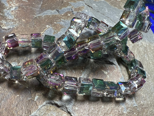 4 x Magic AB Red Gold Teal Yellow Purple Crystal Cube Square Beads / 5 mm / Two Tone Crystal Beads / 4 beads