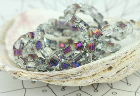 Magic Purple Blue Gold Crystal Cube Square Beads 5 mm / Two Tone Crystal Beads / Square Beads / Mystic Purple Crystal Beads / 6 beads