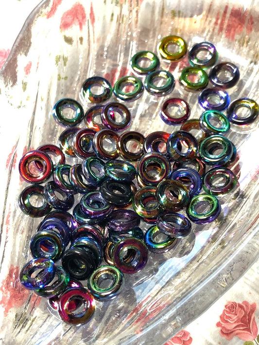 Czech Glass Loops Hoops Loopzillas Ring Bead Two tone Large Hole Round Beads Choose Colour RARE 2 bead set
