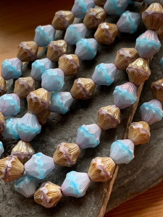 Amazing Blue Pink Gold Czech glass lanterns / Special cut 14 mm / Focal beads / Cupcakes