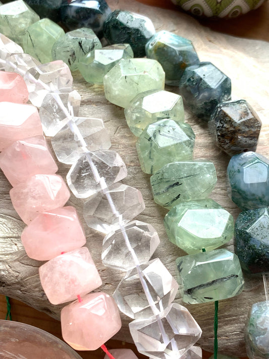 1 x MULTI Natural Faceted Chunk Bead / Irregular Nuggets Jewel Beads 16-22 mm Quartz Rose Quartz, Prehnite, Moss Agate 1 BEAD choose gem