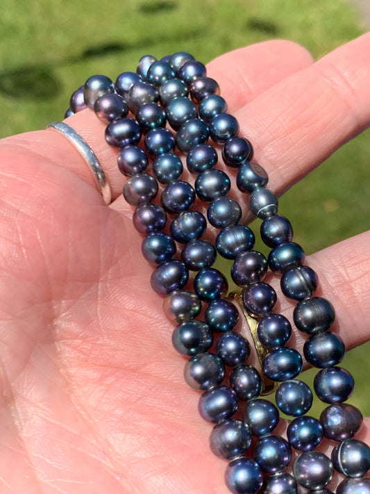 Peacock Freshwater Pearl oval beads Blue Green Teal Pink Purply Two tone 6-7mm apx / Ocean Beads / Pirate beads / June Birthstone