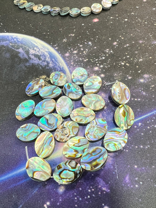 Natural Blue green Abalone shell Beads Oval 12mm - Abalone Shell Beads Amazing Patterns / 4 beads