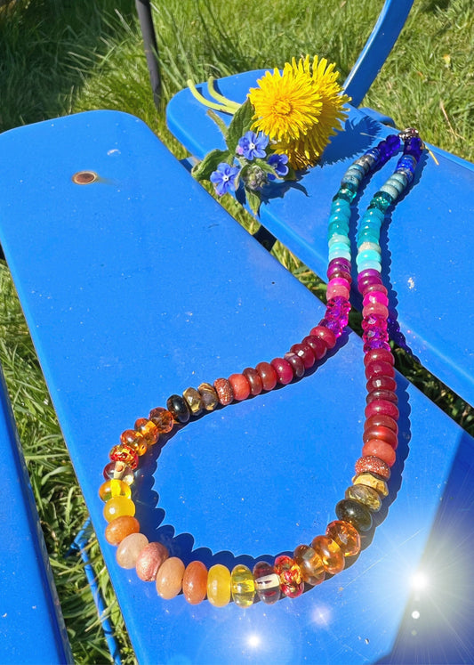 Custom Rainbow Sunset on the Beach Gemstone & Crystal Beaded Necklace Solid Sterling Silver Clasp (Gold Vermeil on request) CHAKRA