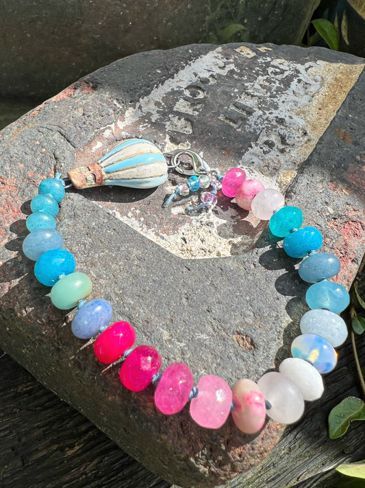Custom Brights Glowy Pink Blue Multi Gemstone Hot Air Balloon Beaded Knotted Bracelet made to order 8mm Handmade Balloon by Nitta Elomäki