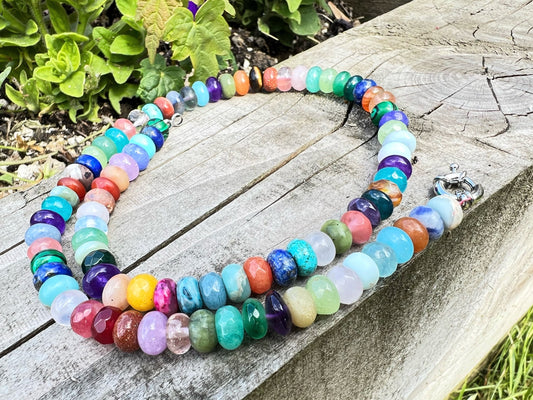 Custom Brights Rainbow Multi Gemstone Crystal & Mixed Beaded Necklace SOLID Sterling Toggle Clasp made to order CHAKRA 8mm beads