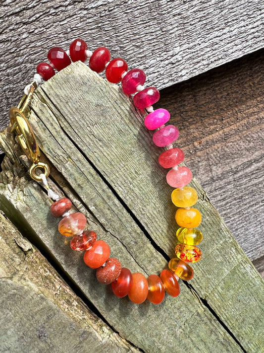 Custom Candy Sunrise Brights Rainbow Multi Gemstone Beaded Knotted Bracelet - made to order 8mm beads
