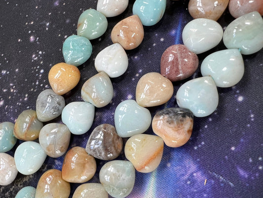 Soft Mixed Natural Aqua Green Brown Amazonite Heart Beads 12mm / Natural Blue Amazonite Beads / Birds Egg tones / Natural Gemstone beads