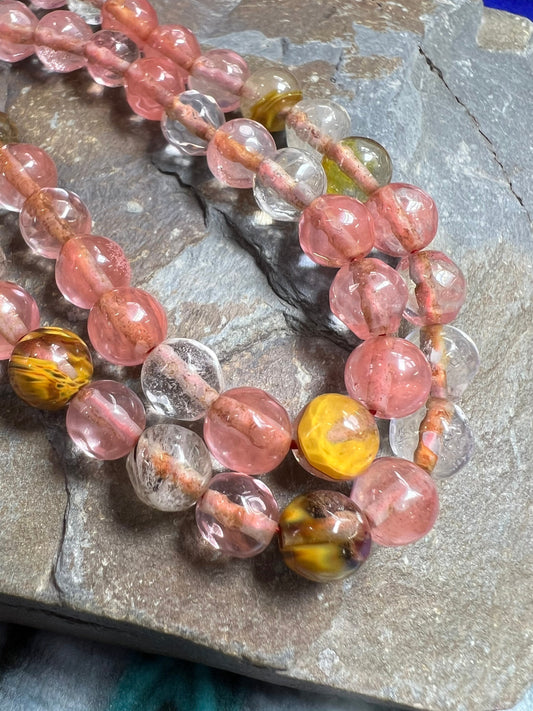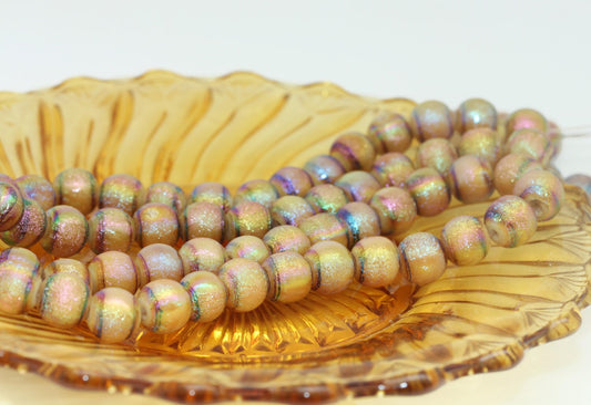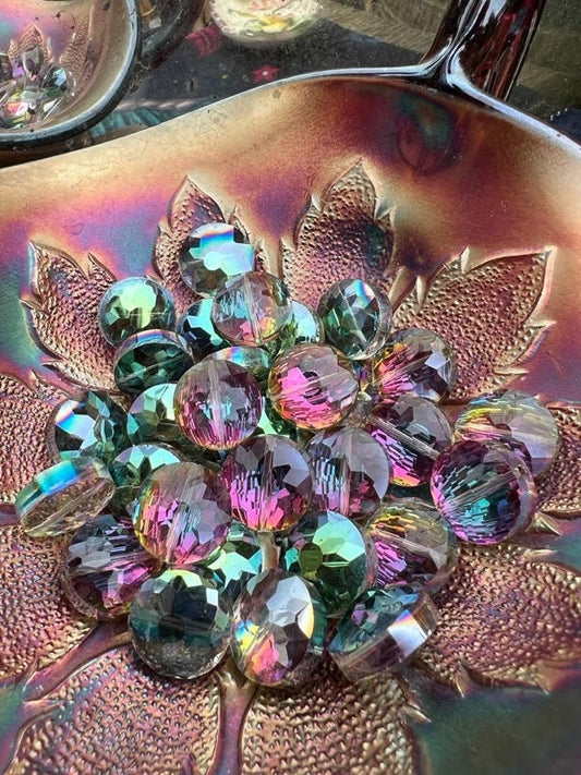 Multi tonal Czech Glass rainbow Melon beads / Magical beads / Iridescent beads 10 mm