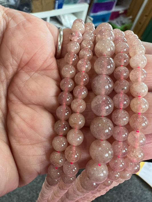 Natural Strawberry Quartz Round rustic handcut Beads 6 or 8mm / Healing gemstone Beads