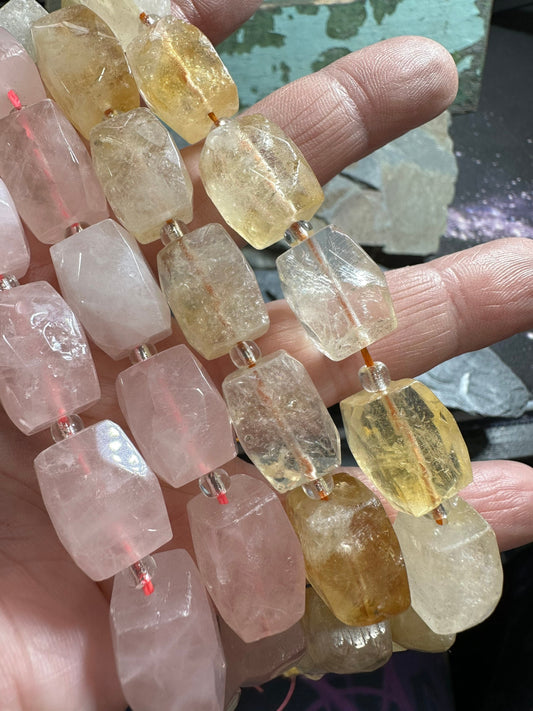 Natural faceted Jewel Gem faceted chunk nugget rectangles. Rose Quartz or Citrine 16mm aprx