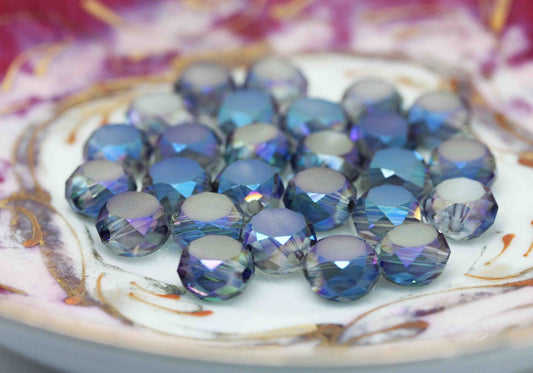 Iridescent Blue Crystal Coin Beads 18mm / Two Tone Crystal Beads / Magic Crystal Beads / Mystic Crystal Coin Beads / Vitrail beads 2 beads