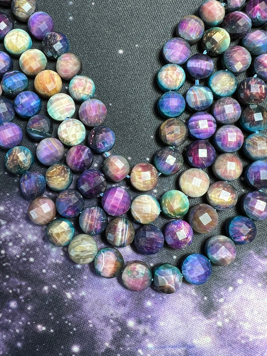 Tiger Eye Chequerboard faceted double sided purple pink brown coin beads unique Tiger Eye 8mm