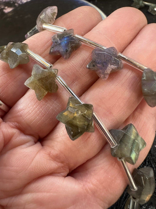 Labradorite Hand Faceted Briolette Gemstone star beads / Celestial Beads 10-12mm