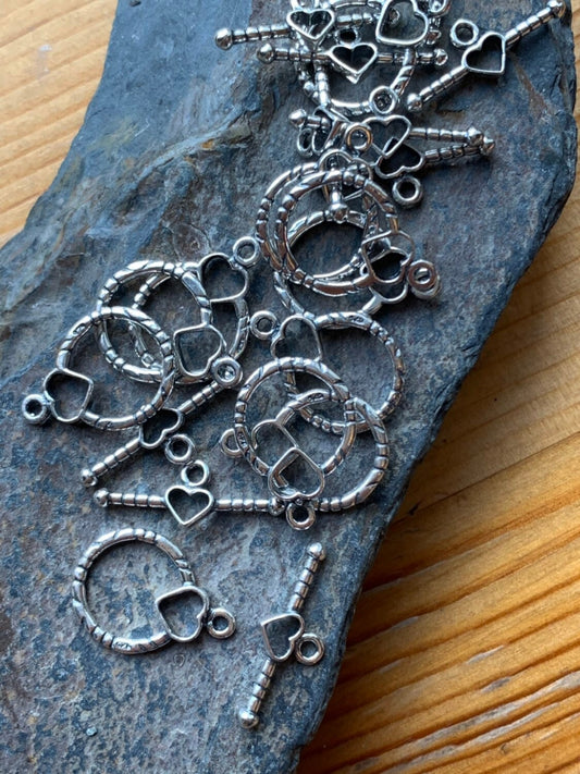 Sterling Silver Heart Toggle Clasp 14 mm - 1 clasp