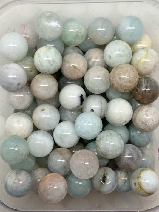 Natural Blue Round Aquamarine beads / 8mm approx/ Soft Pale Blue Gemstone Beads / Tonal variance SOLD IN A BAG