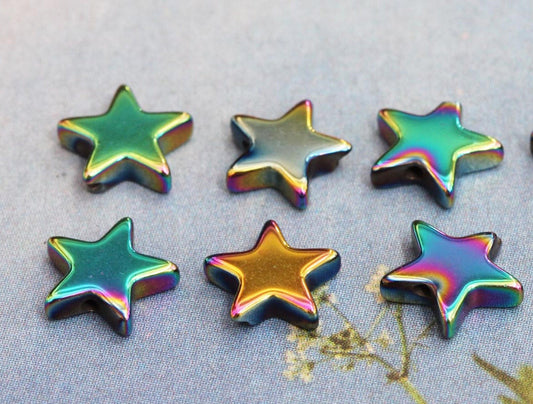 Rainbow Titanium Haematite Gemstone Star Beads 8mm & 10mm / Two Tone Haematite Beads / Mystic Hematite star 10mm 8mm / 4 bead set