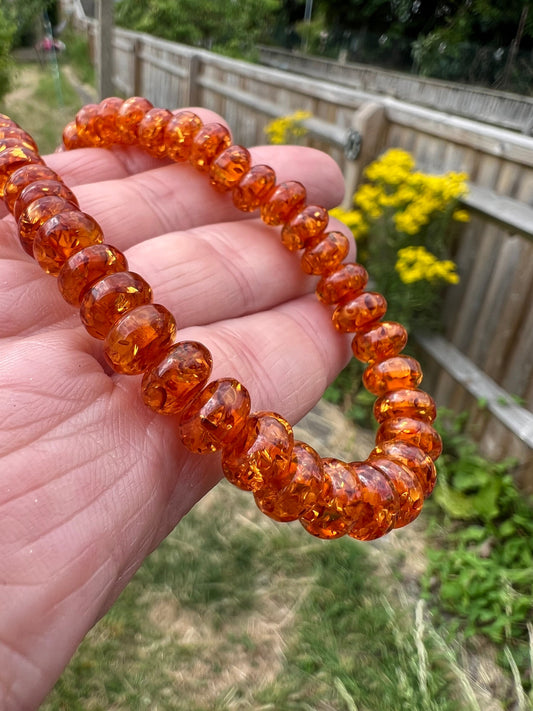 Orange Cognac Golden Faux Amber Rondelle Beads 8 x 5 / Resin Amber disc beads Rustic Amber Beads Barley sugar Beads / Small order