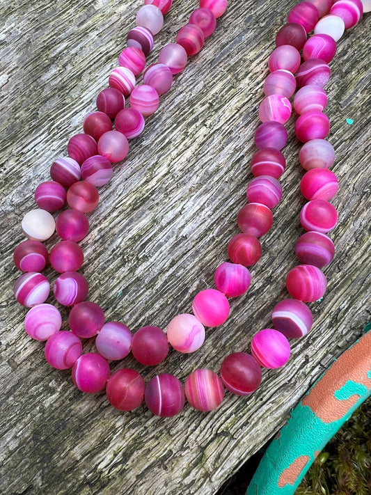 Matte Pink Banded Agate Gemstone Beads 8mm / Matte Agate Beads /Gemstone Agate Beads / Round Agate Beads