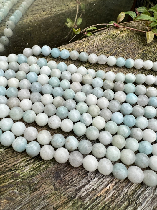 Natural rustic Aqua Pale Blue Round Aquamarine beads / 8 mm approx/ Soft Pale Blue Green Gemstone Beads
