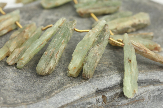 Natural Green Kyanite Shards Points Rough Beads 17 - 30 mm Rustic Gemstone Irregular Cut Beads Freeform Kyanite Gemstone Beads 1 bead