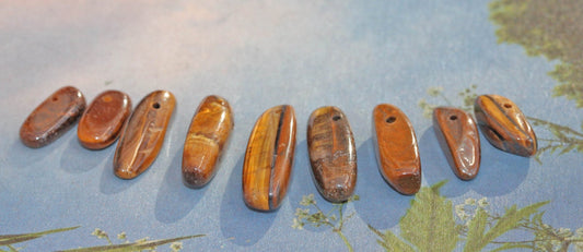 Tigers Eye Soft Nuggets and Points 18-22mm / Top Drilled Teeth SET of 8 Beads Lovely TOP Quality
